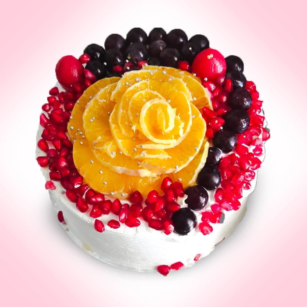 Fruit flavoured cake, Vanilla cake, or butterscotch cake topped with vanilla cream and fruit slices beautifully decorated...